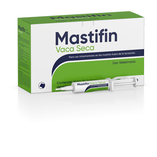 Mastifin Vaca Seca es indicado para el tratamiento y control de mastitis subclínicas durante el período seco en vacas. Mastifin Vaca Seca posee una formulación con acción prolongada, que se extiende por cuatro semanas. Su acción antibacteriana abarca los principales agentes Gram positivos y Gram negativos presentes en la mayoría de los problemas de mastitis en los bovinos: Staphylococcus aureus, S. epidermidis, Streptococcus agalactiae, S. uberis, S. dysgalactiae, E. coli, Pseudomonas spp, Klebsiellaspp, Proteus spp.